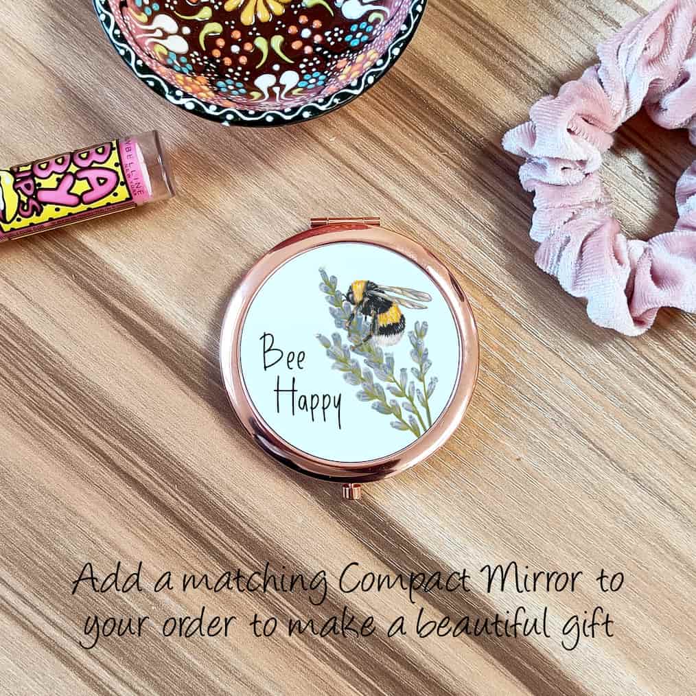 Brighten up your morning routine with the bee happy make up bag! Featuring a vibrant bumble bee design and plenty of room for cosmetics, this bag is the perfect way to show your appreciation for the special someone in your life. Add on a matching compact mirror – so you can look your best all day long! Are you ready to be happy?