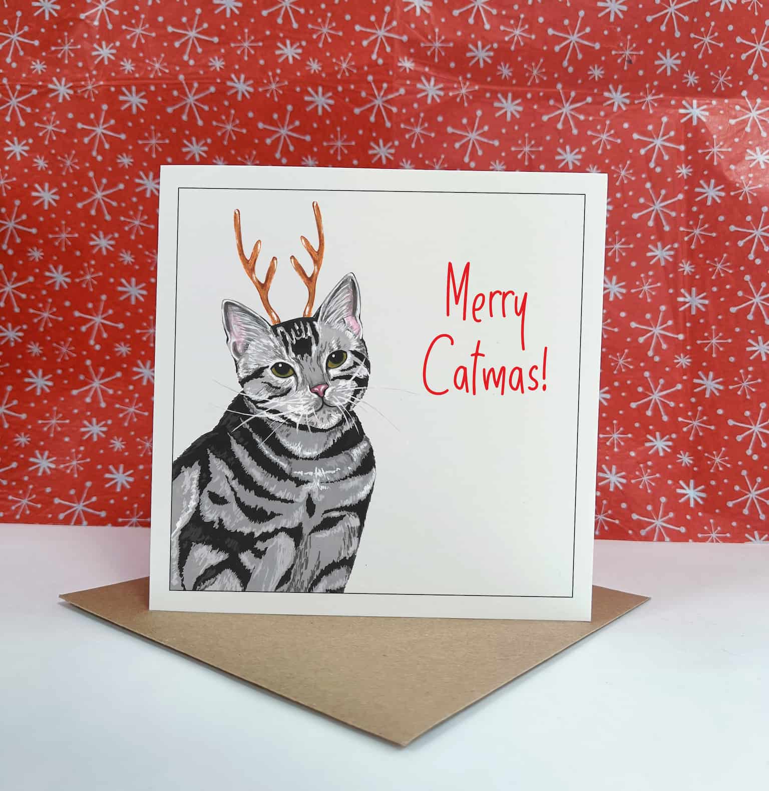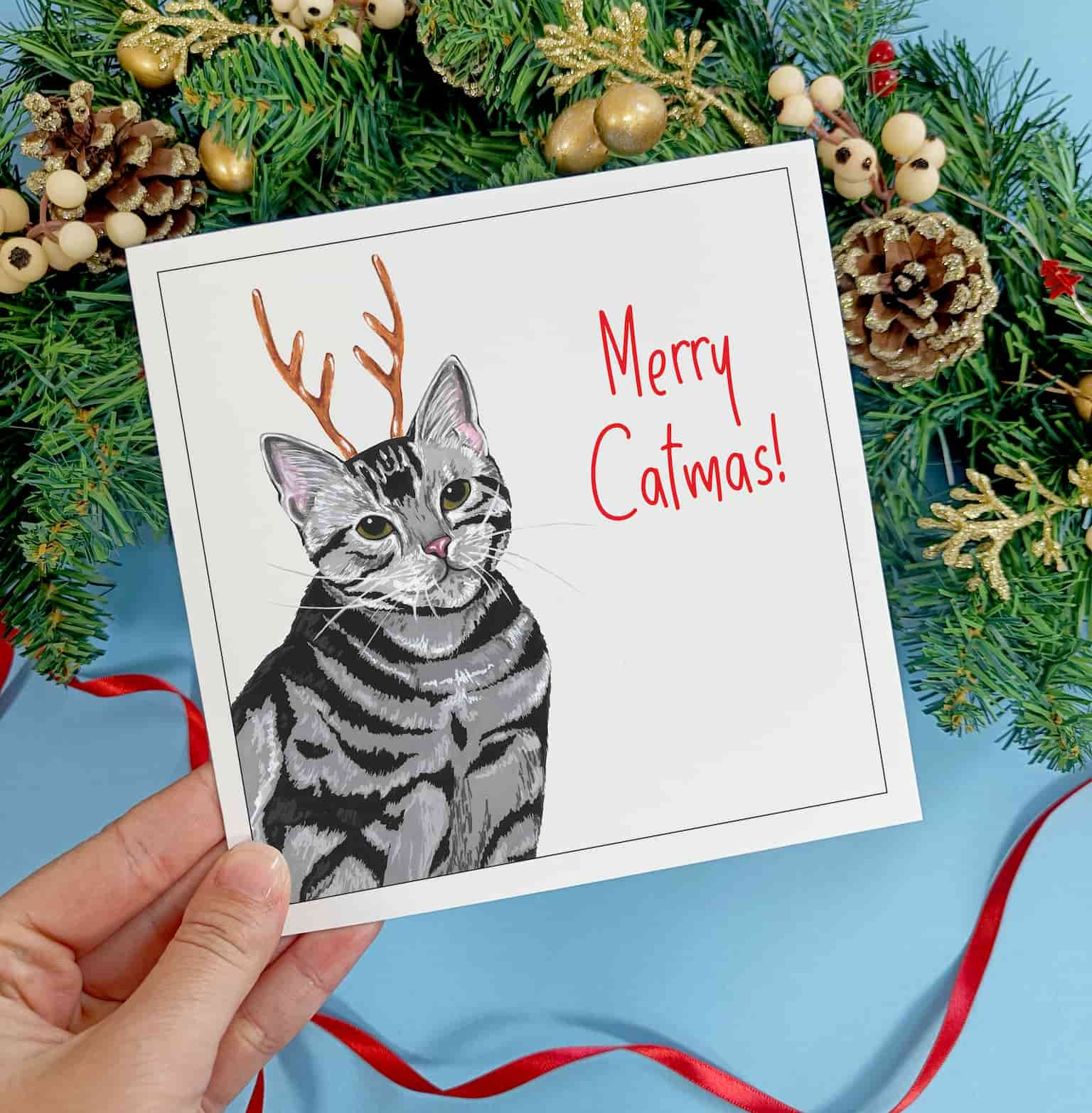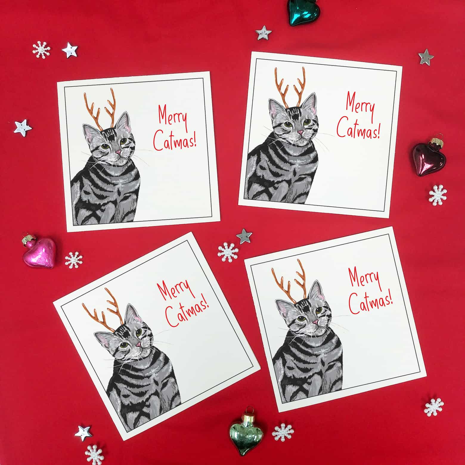 This cute tabby cat Christmas card is such a lovely way to wish your loved ones a merry Christmas this festive season. It would make the perfect card from the cat this Christmas!