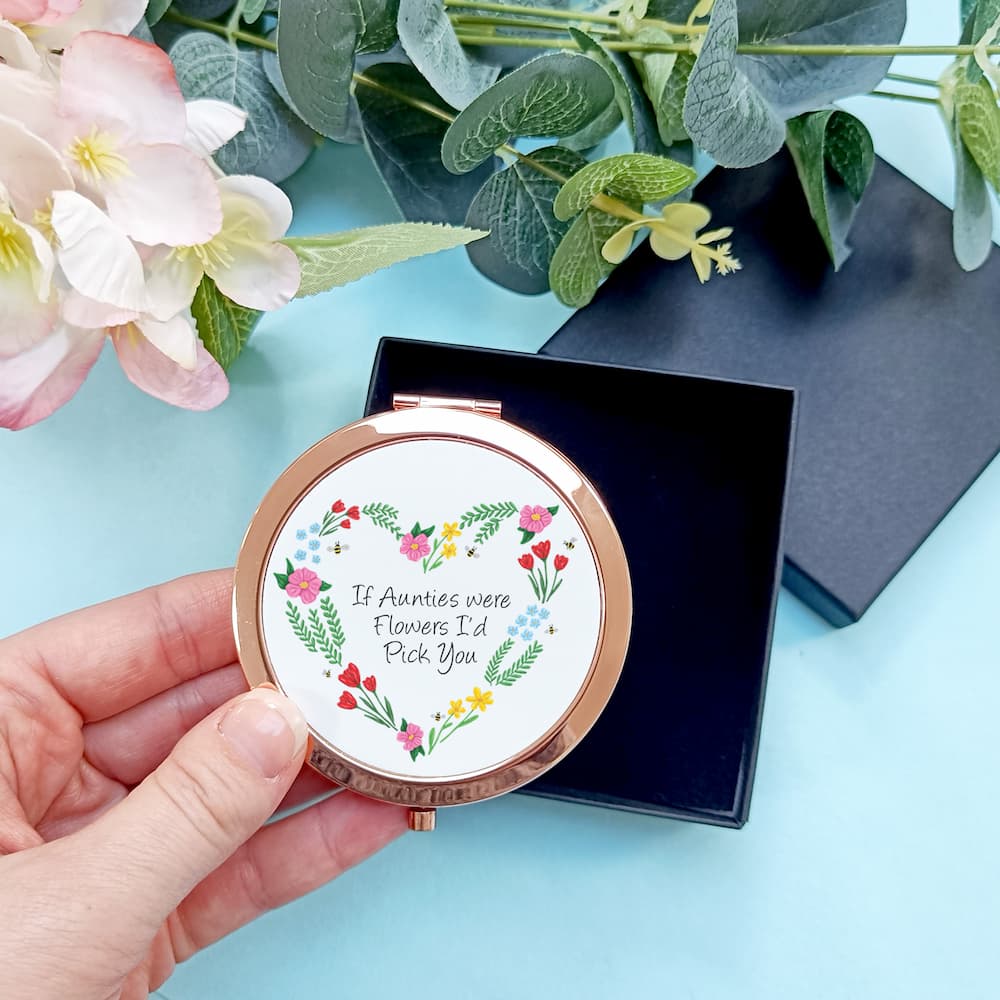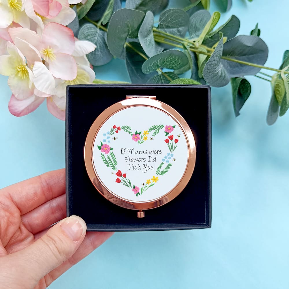 Floral Heart Compact Mirror | If Mums Were Flowers Pocket Mirror | Personalised Floral Mirror | Mother's Day Gift