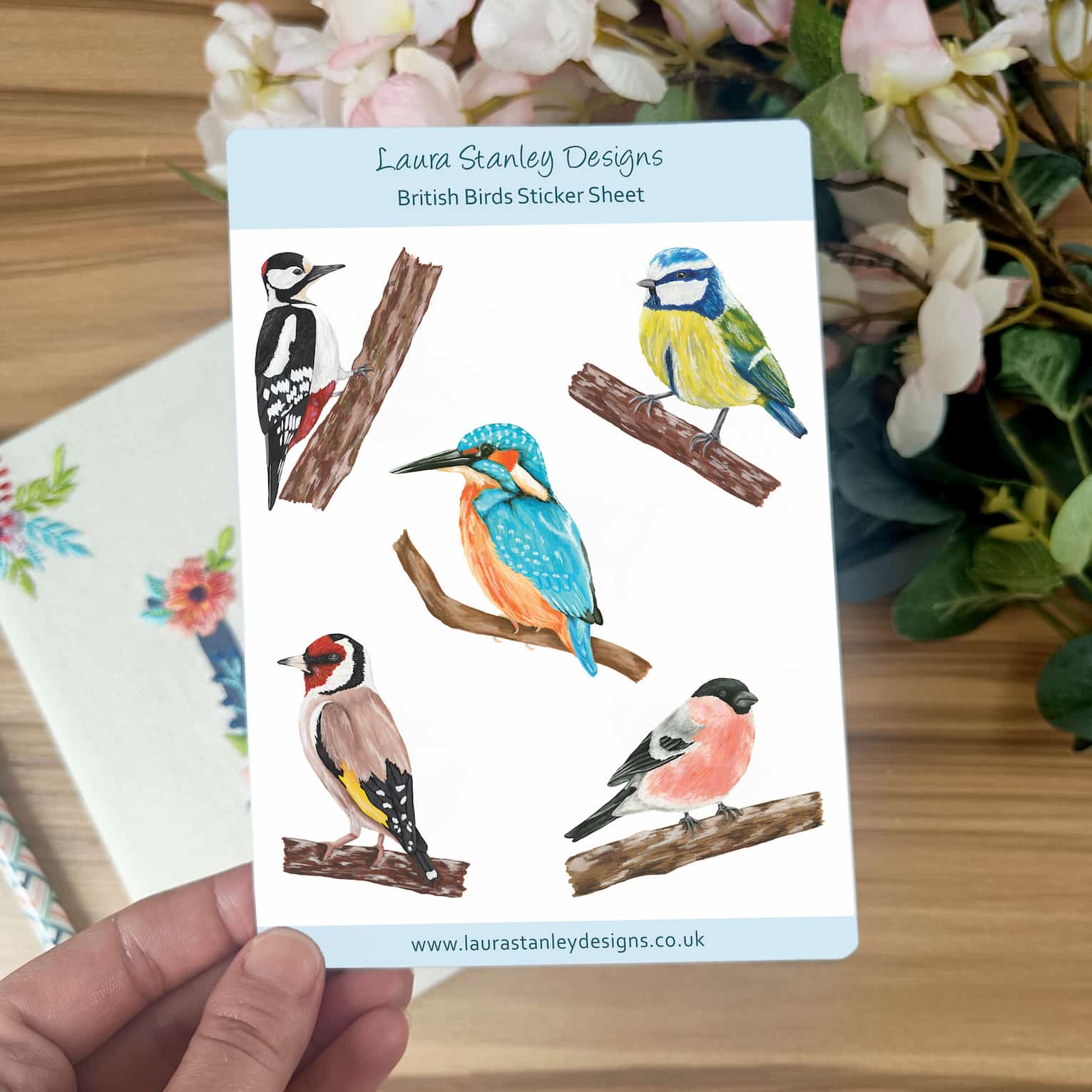 Each sticker sheet is designed, printed and cut to order in Laura's studio in Sussex.