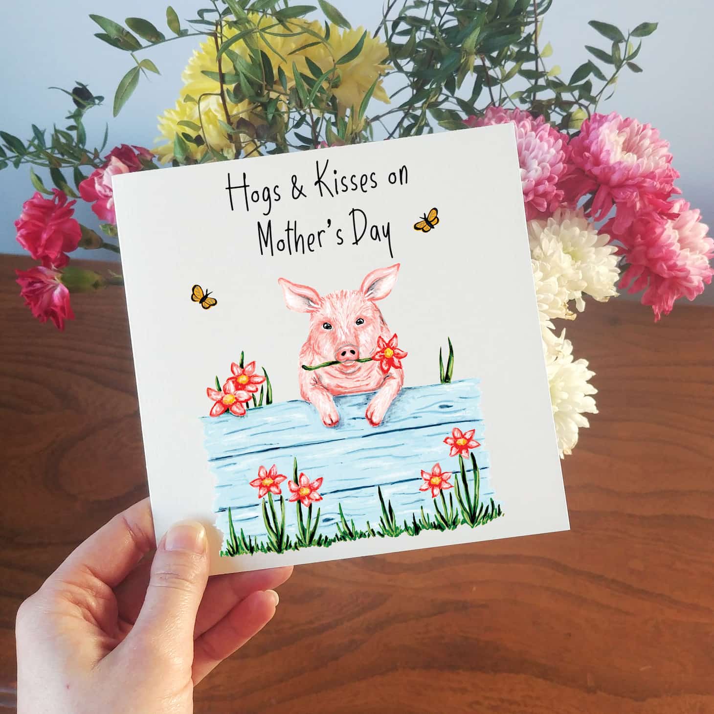 Illustrated Cute Pig Mother's Day Card | Hogs & Kisses