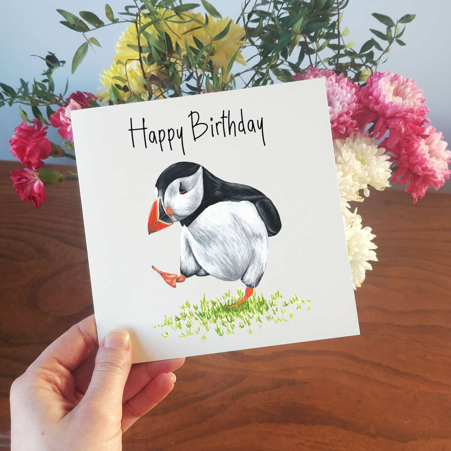 This beautifully illustrated dancing puffin makes a lovely birthday card, and you can even personalise the text by adding the recipient's name.