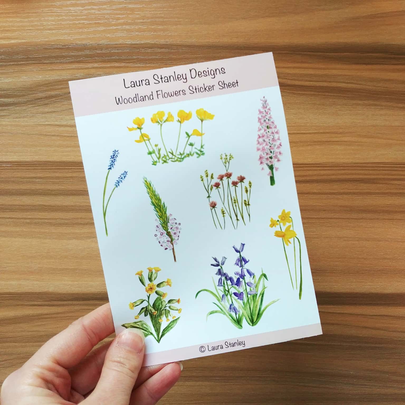 Each sticker sheet is designed, printed and cut to order in Laura's studio in Sussex.