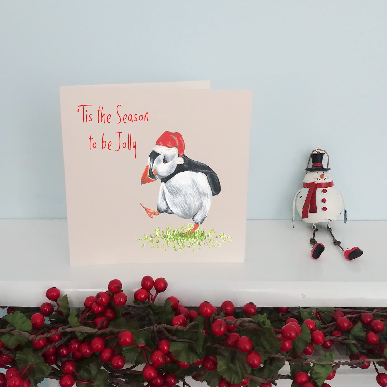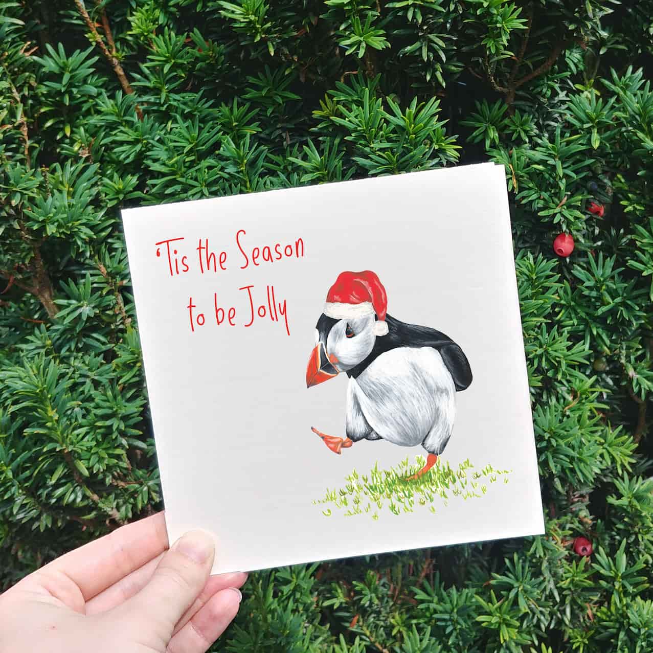 Jolly Puffin Christmas Card | Tis the Season to be Jolly