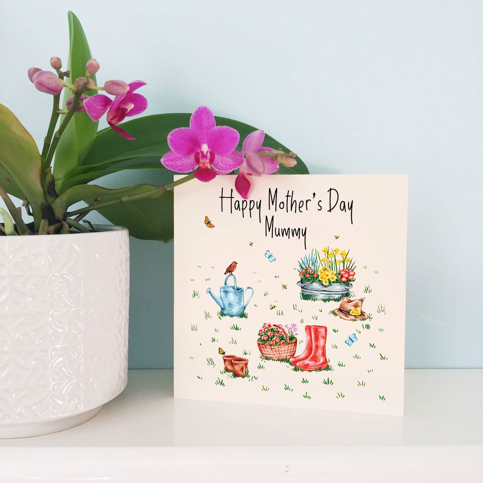 Personalised Floral Garden and Wellies Mother's Day Card