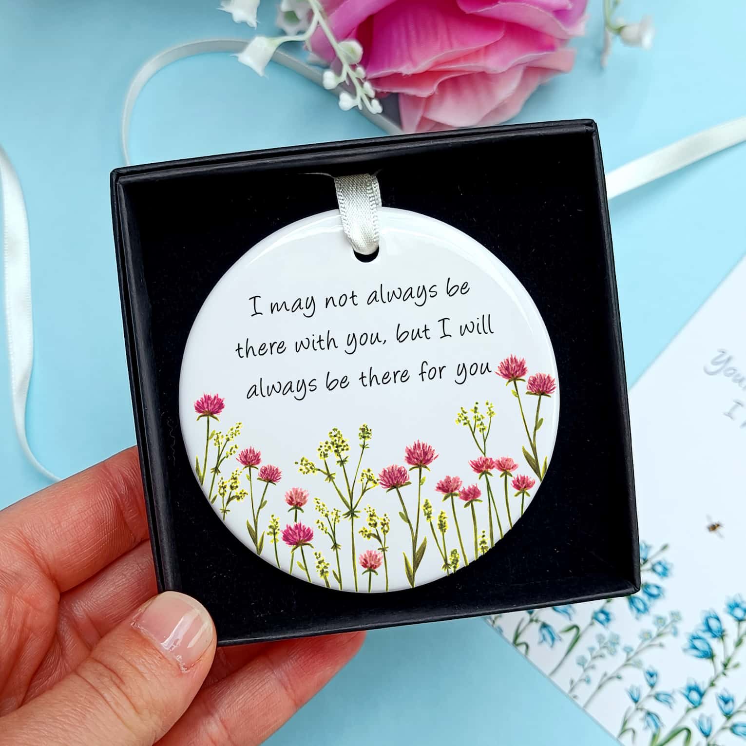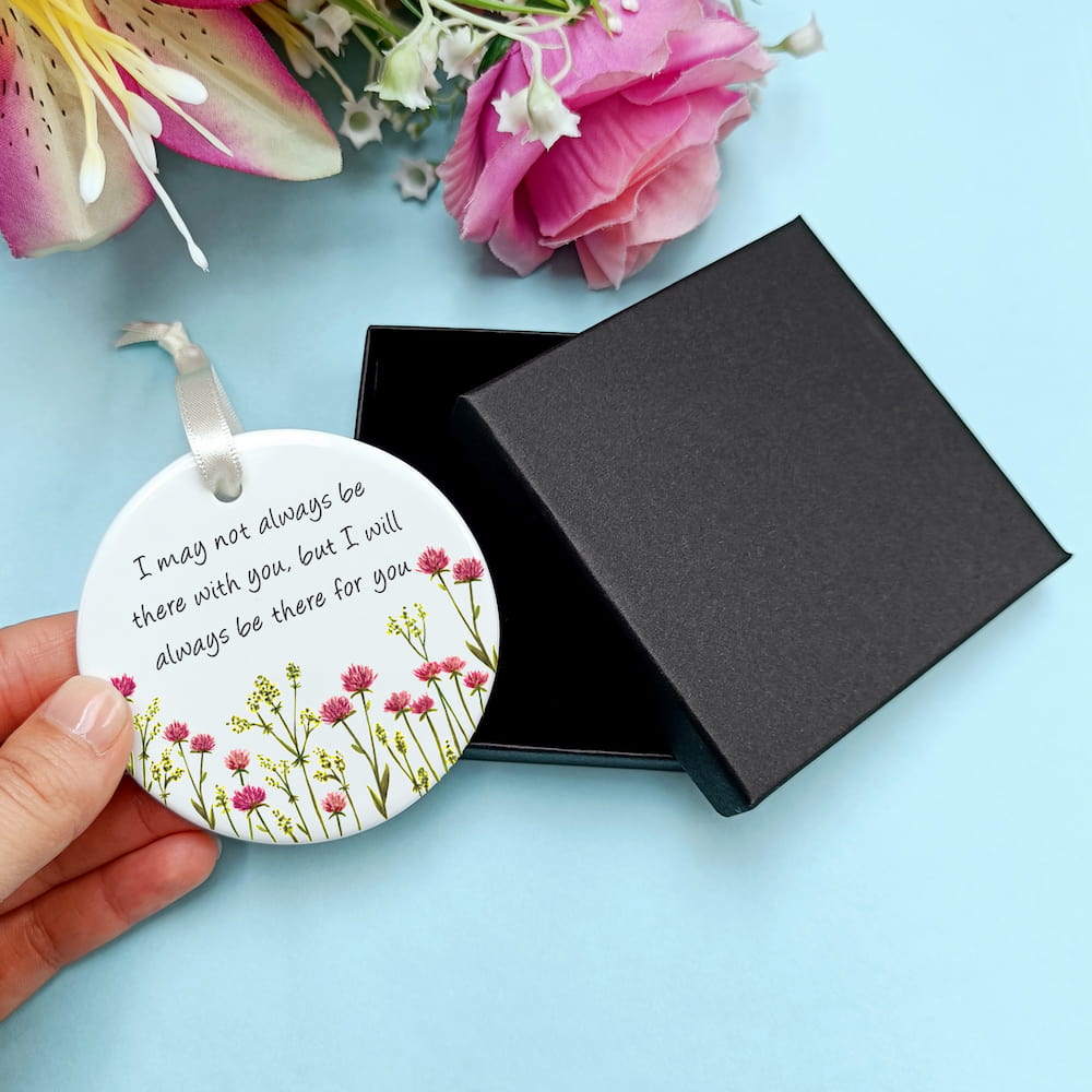Print shows Laura's hand-painted flowers with the text 'I may not always be there with you, but I will always be there for you'. You can also add the name of your friend at the beginning and your name at the end.