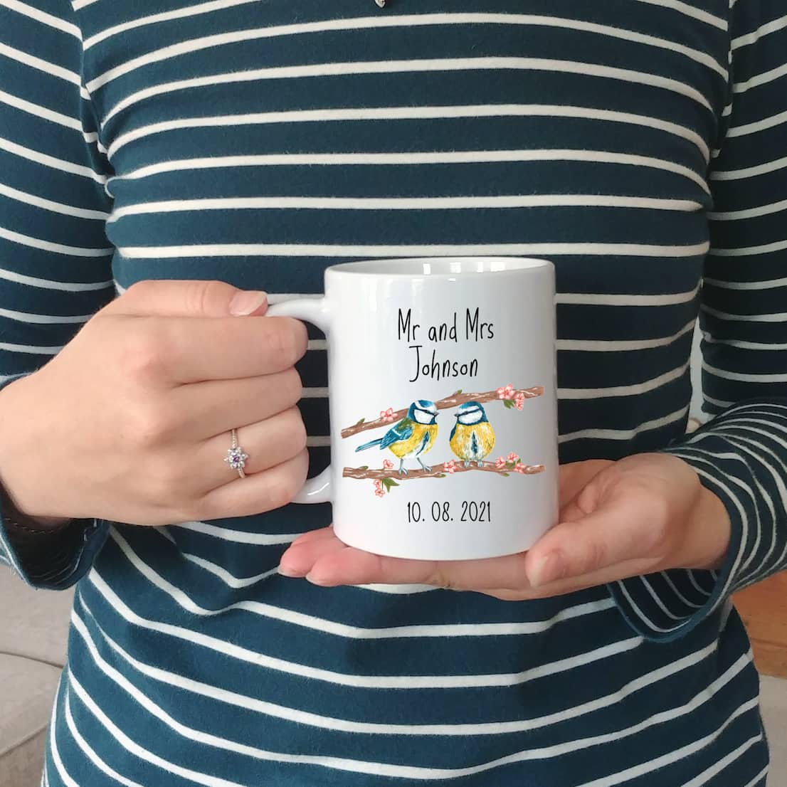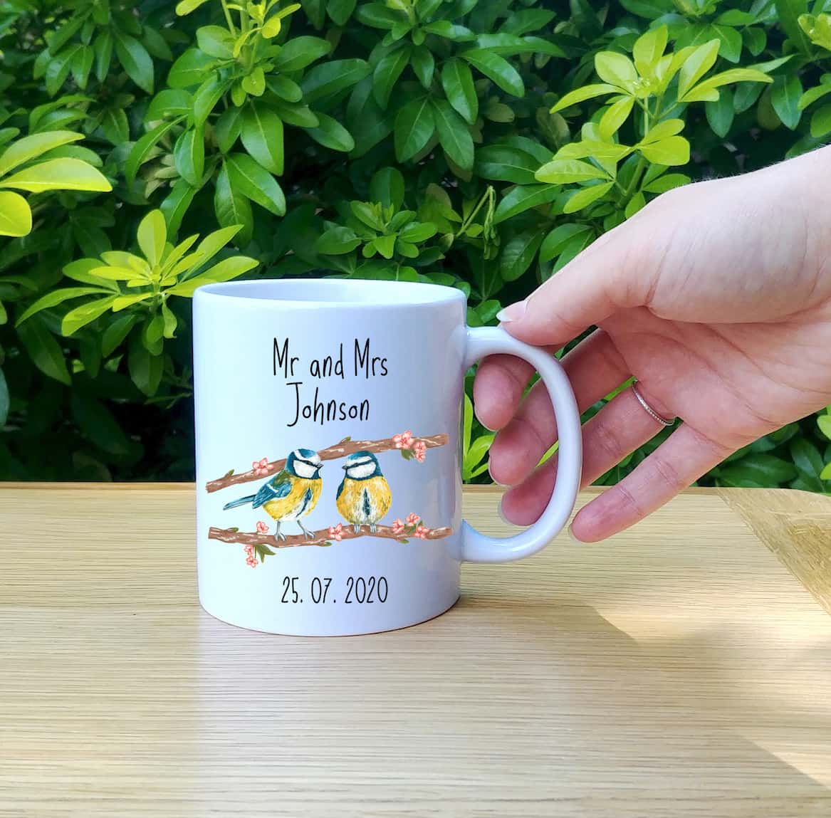 These beautifully illustrated Mr and Mrs bluetit mugs make a lovely wedding gift for family and friends. You can add a surname and date to the mug making it an extra special gift.