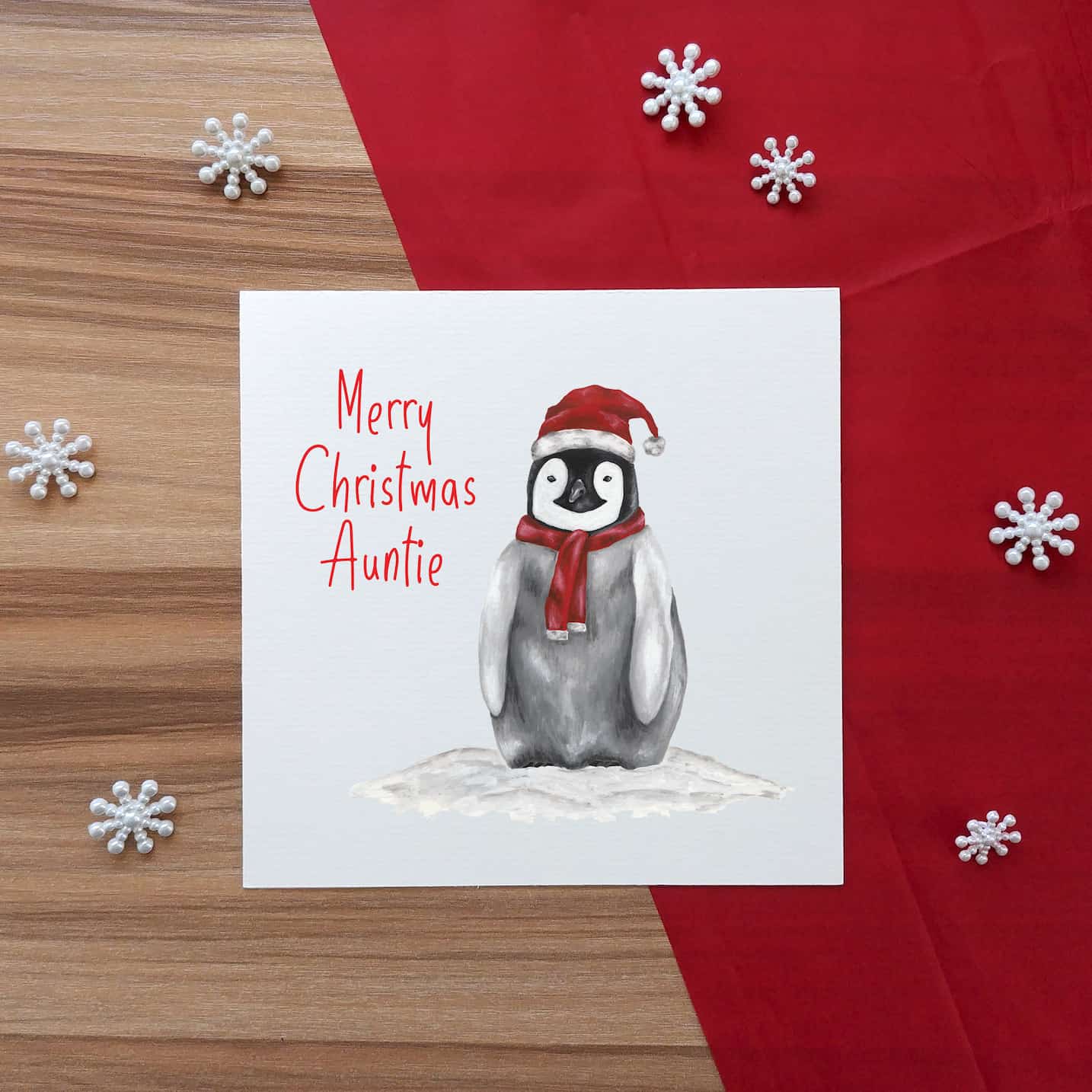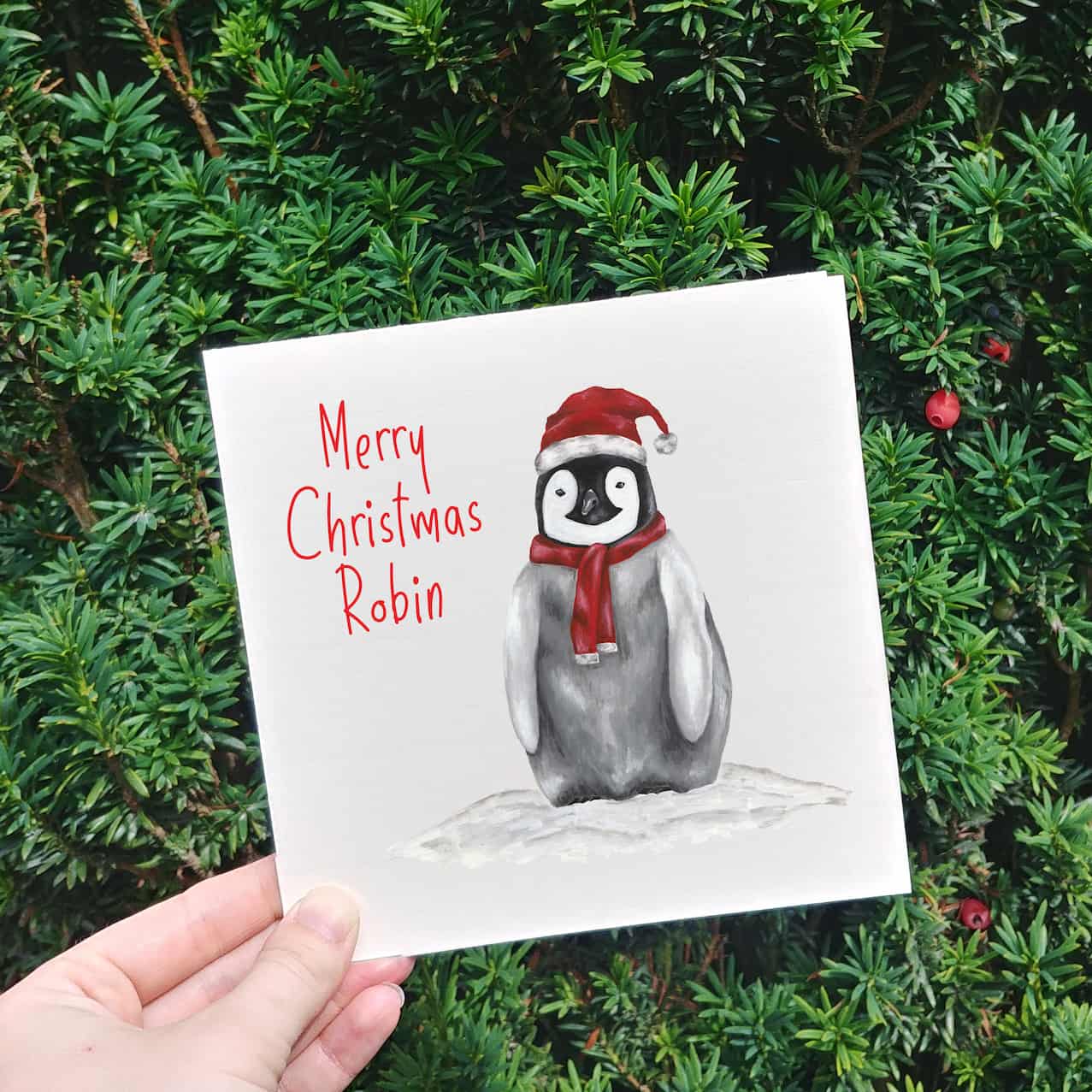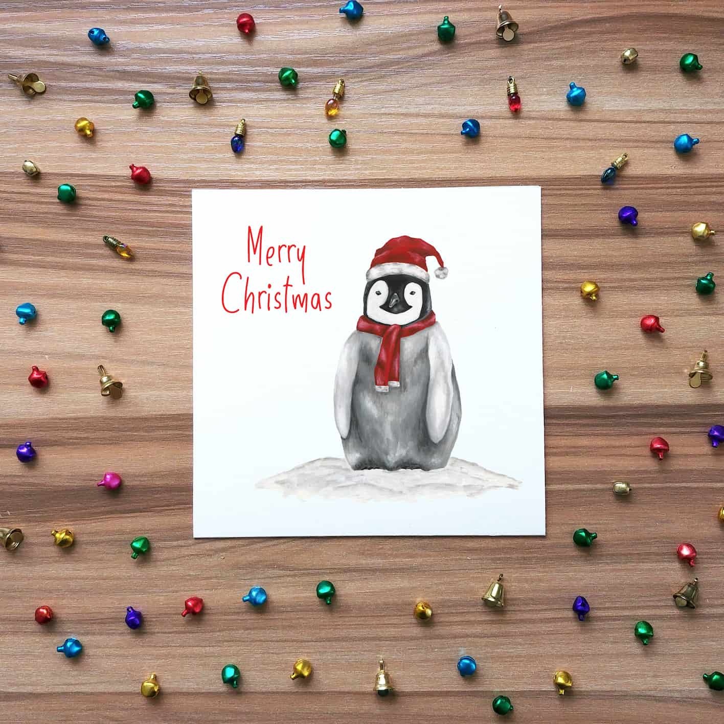 These cards feature a digital print of Laura's baby emperor penguin illustration in gouache.