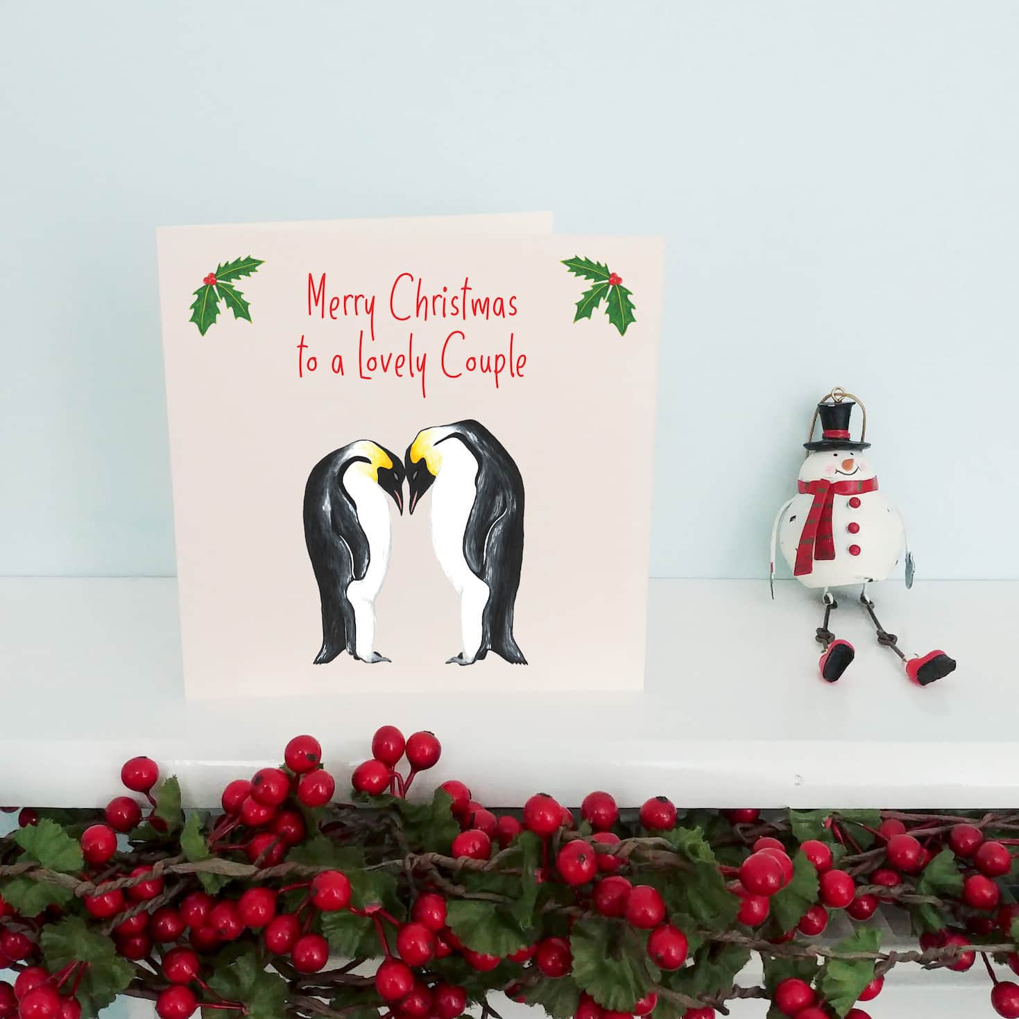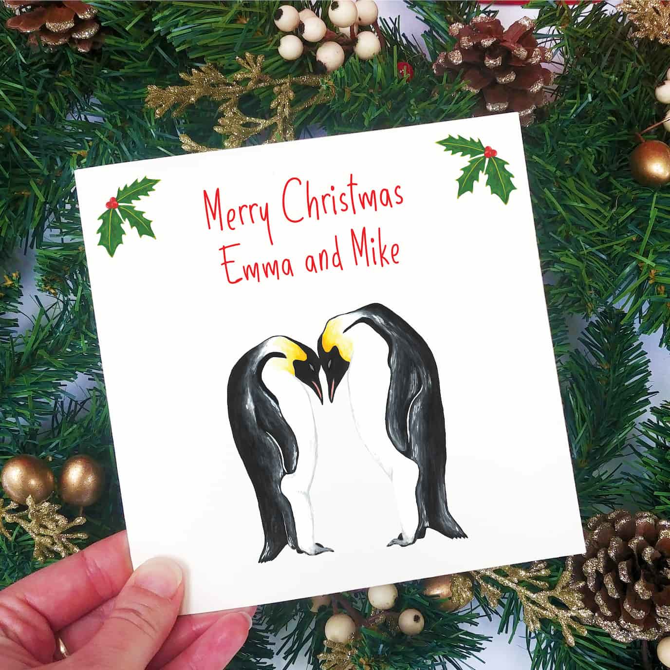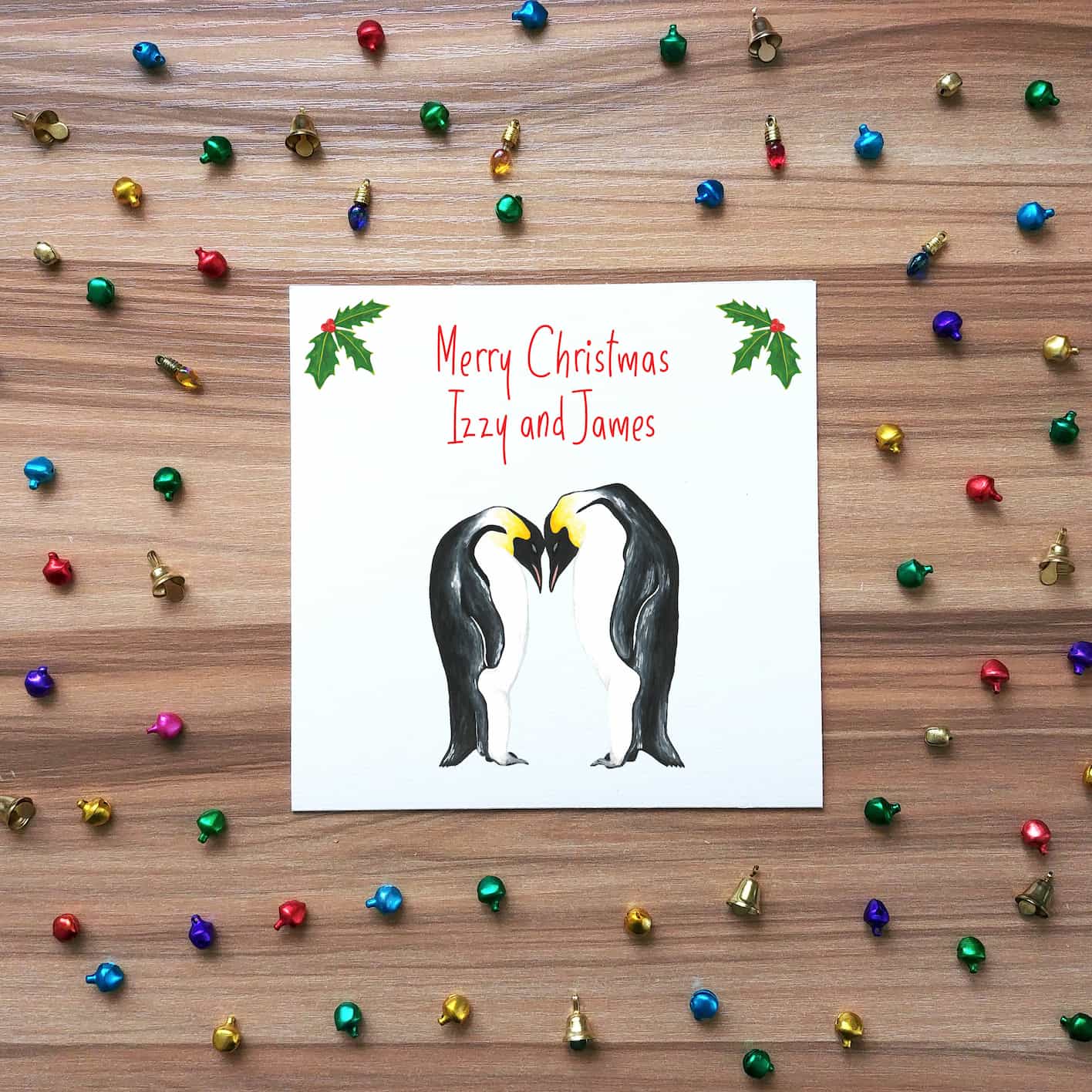 You have the option to personalise the text on the front of the card! Choose from the drop-down menu either 'Merry Christmas to a Lovely Couple', 'Merry Christmas Names', where you can add the recipient's names, or 'Personalise'. Here you can write exactly what you like, look through the photos for examples.