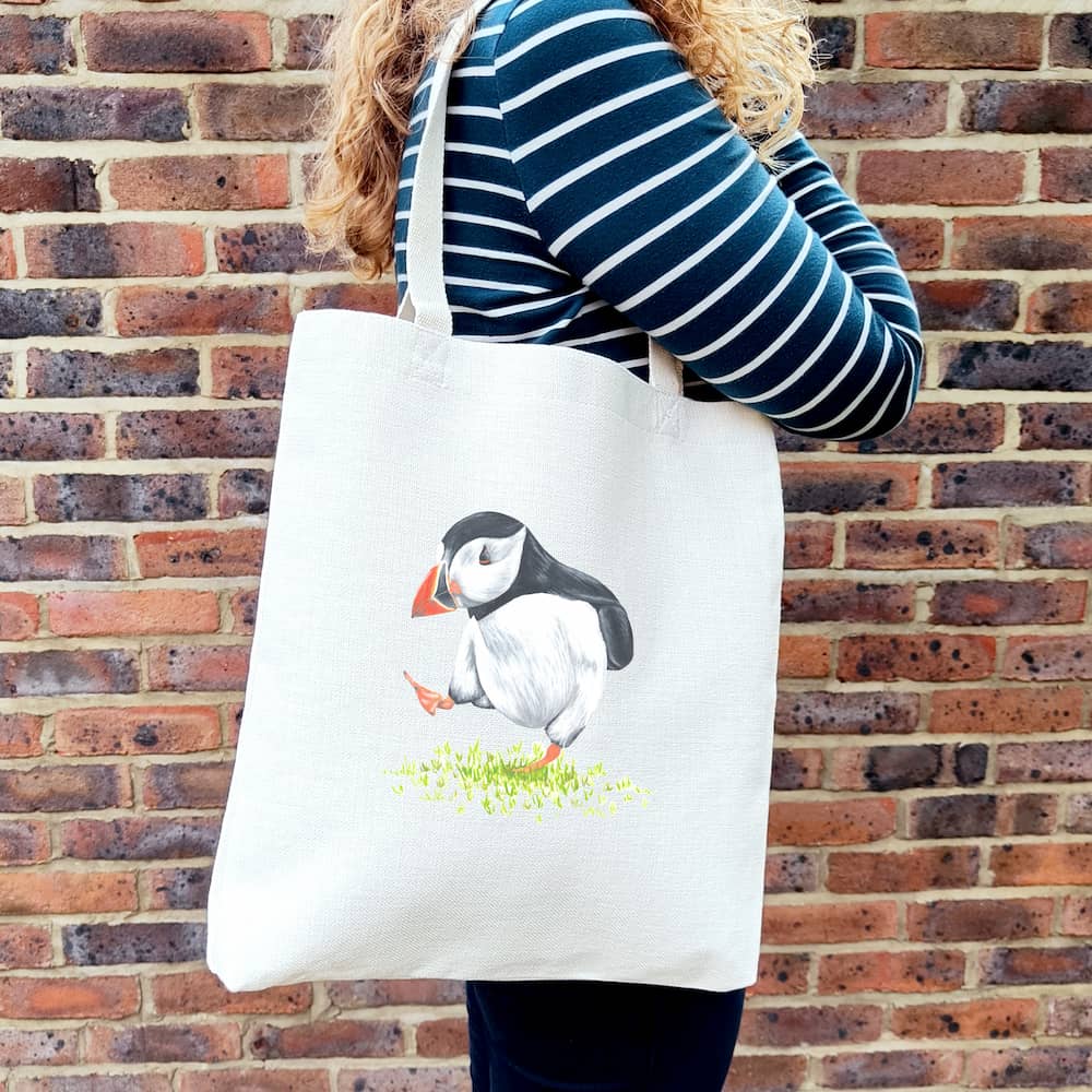 Personalised Puffin Tote Bag | Dancing Puffin Design