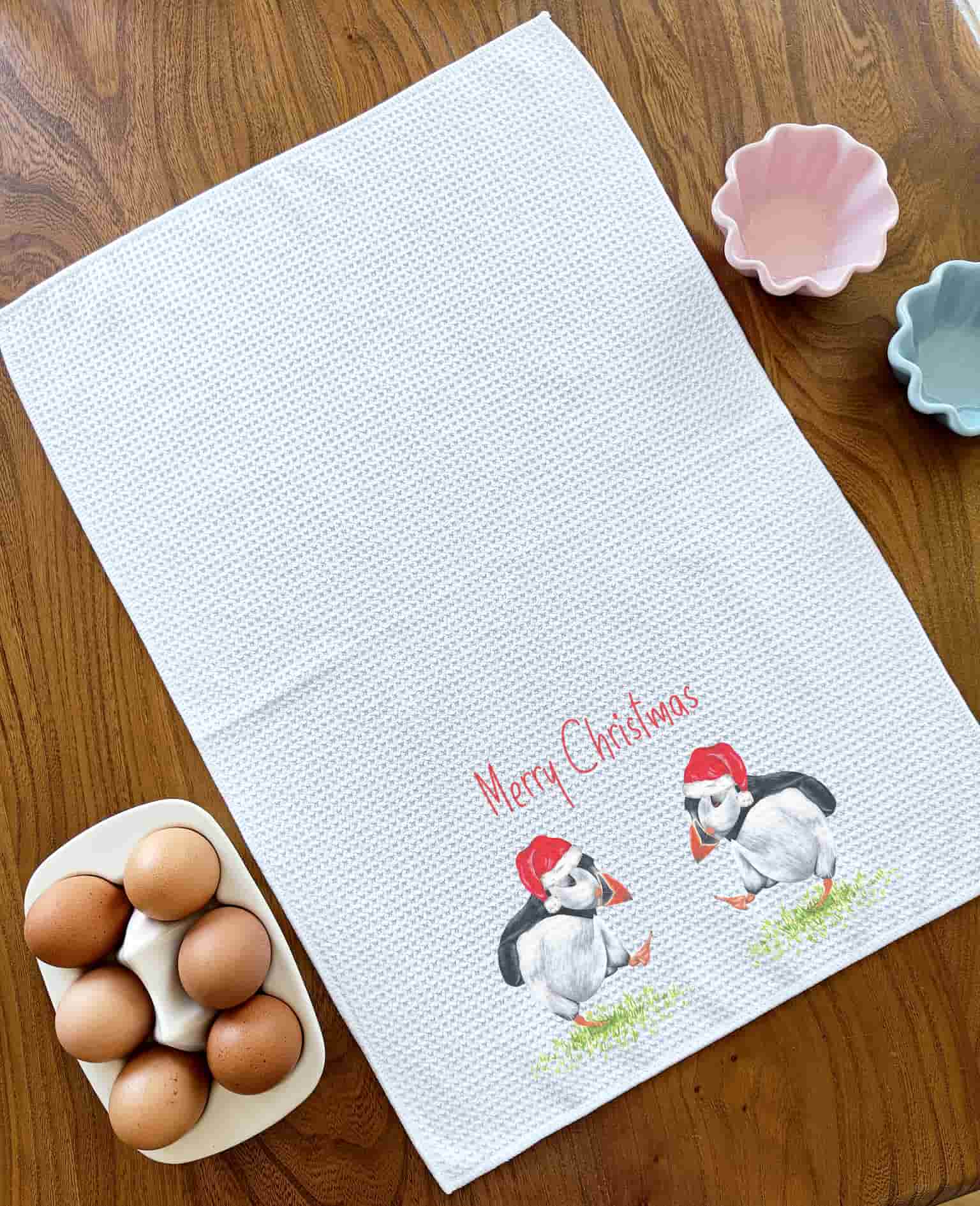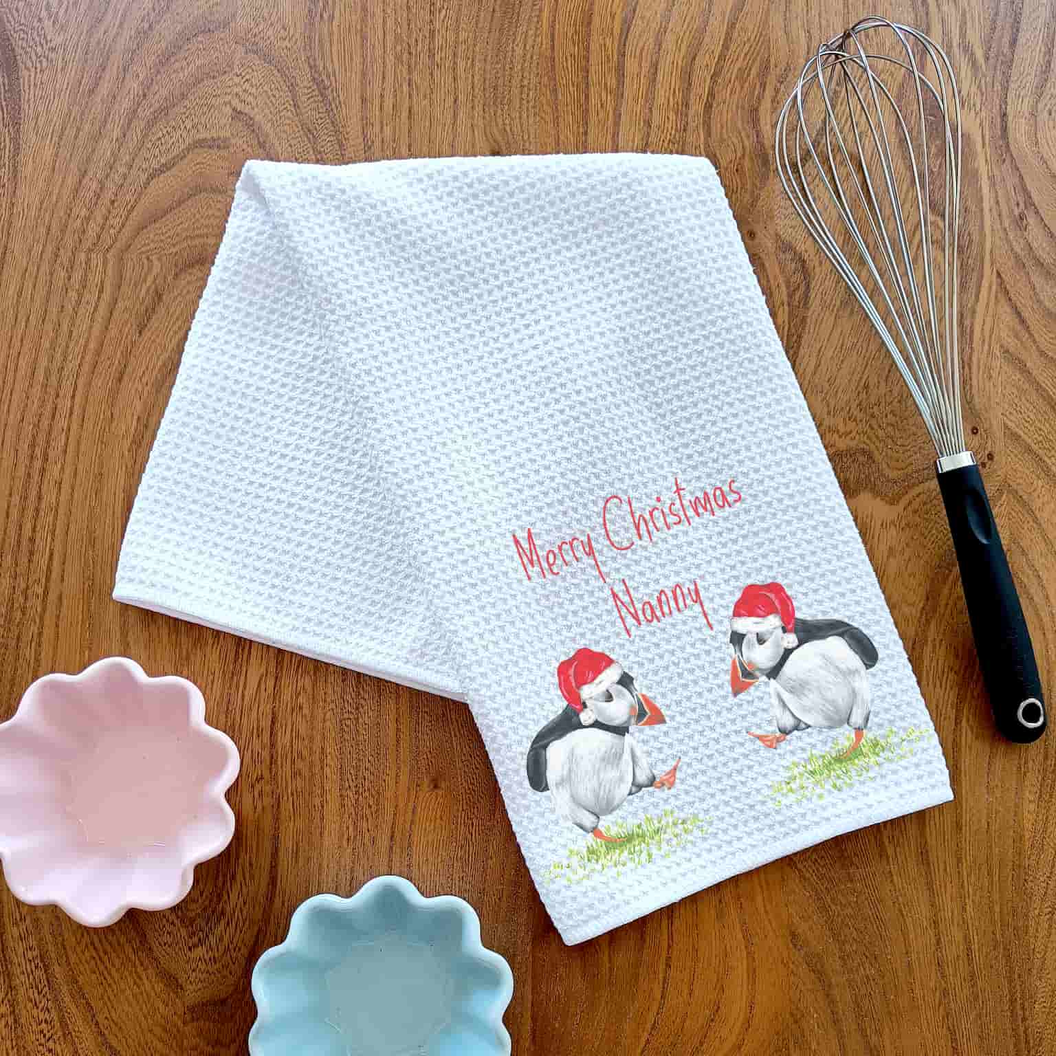 Celebrate the festive season with our unique Personalised Christmas Tea Towel! Printed with a Puffin design, made with high quality microfibre, and finished with 'Merry Christmas', it's ideal for bringing some cheer to any kitchen. Get ready to enjoy a merry and memorable Christmas!