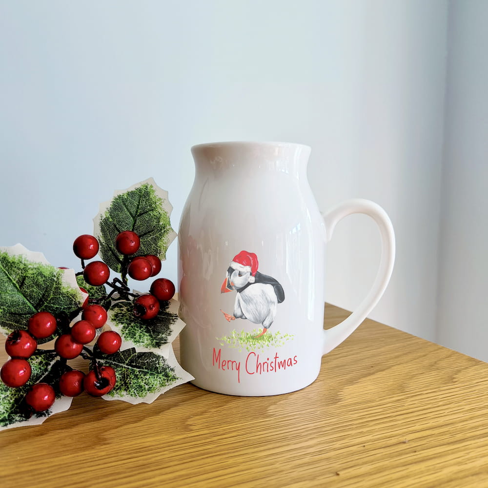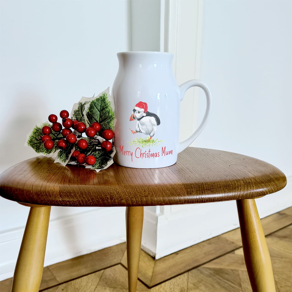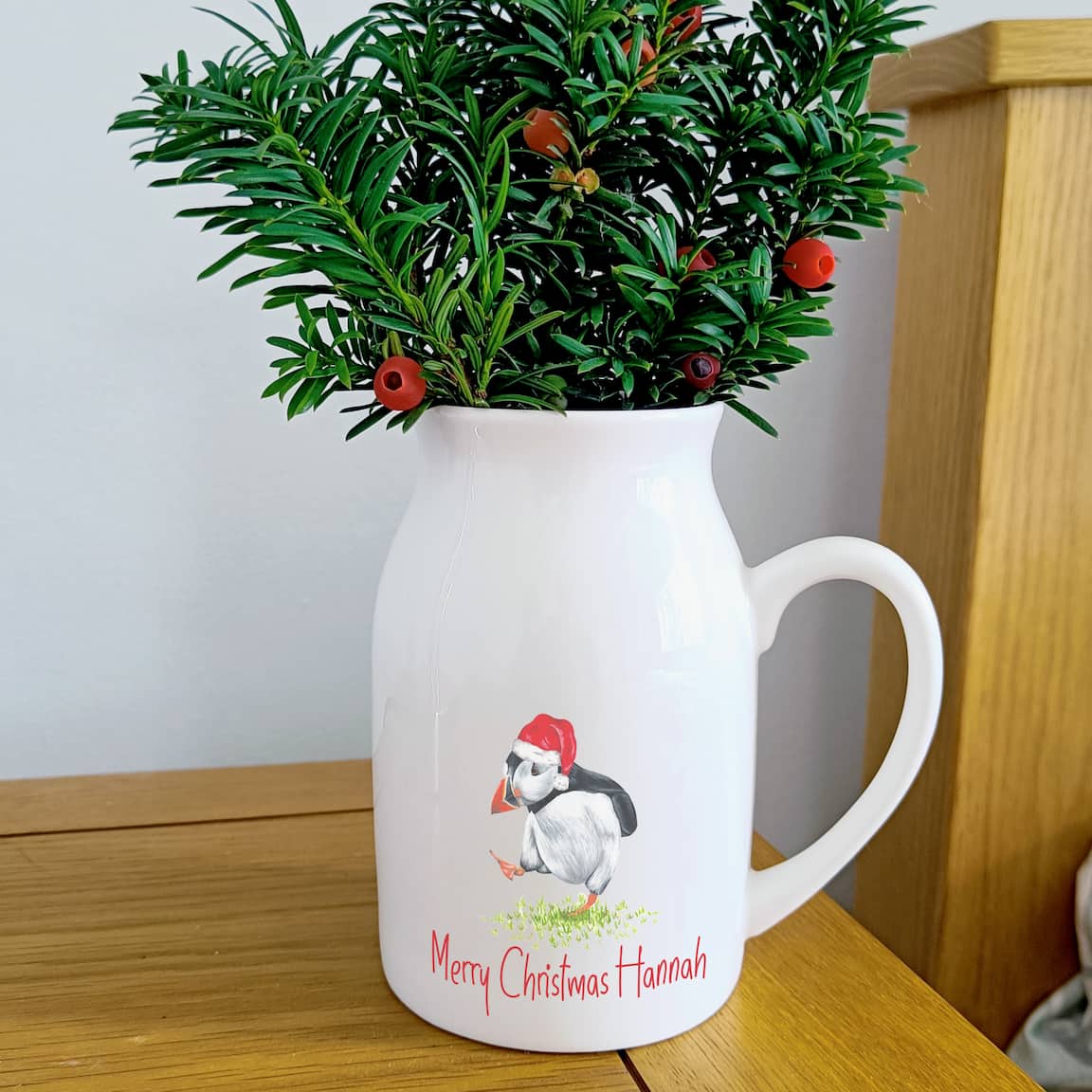 This Puffin Flower Jug is perfect as a Christmas decoration or a unique vase. Personalised with their name, this vase is perfect as a Christmas decoration. Get ready to bring some cheer with this thoughtful gift!