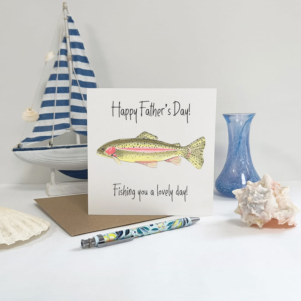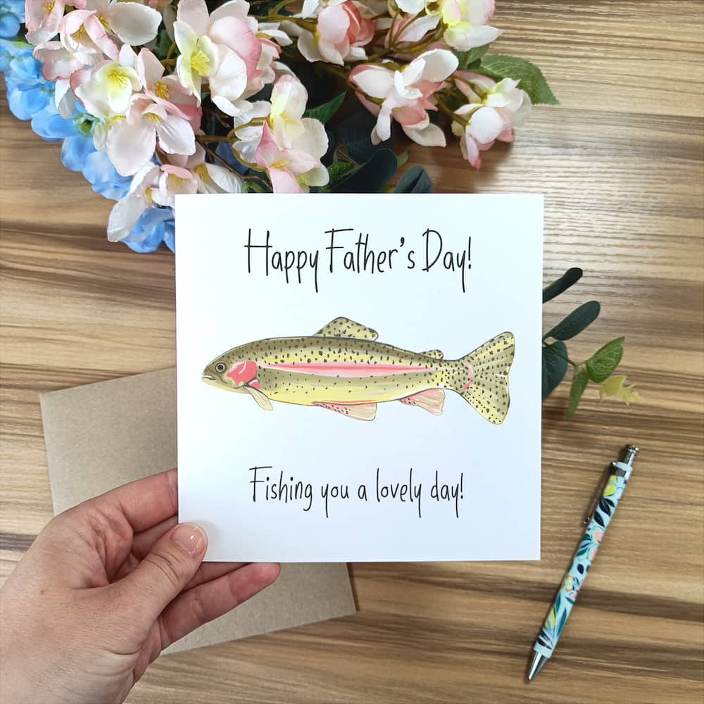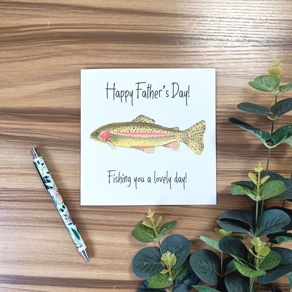 Hook your dad or grandad this Father's Day with our Rainbow Trout card! The perfect gift for fishing lovers, this unique card will reel in all the love and appreciation they deserve.
