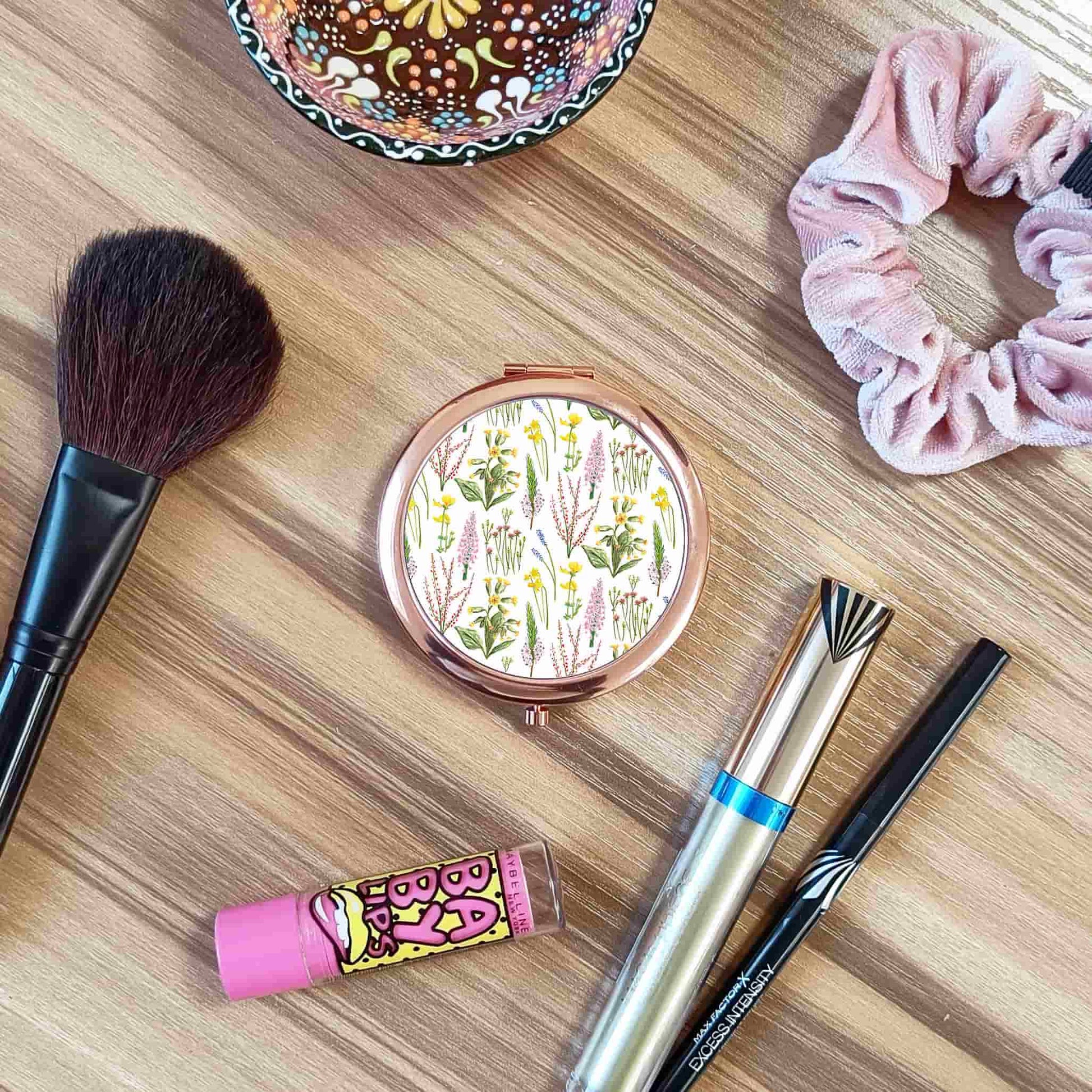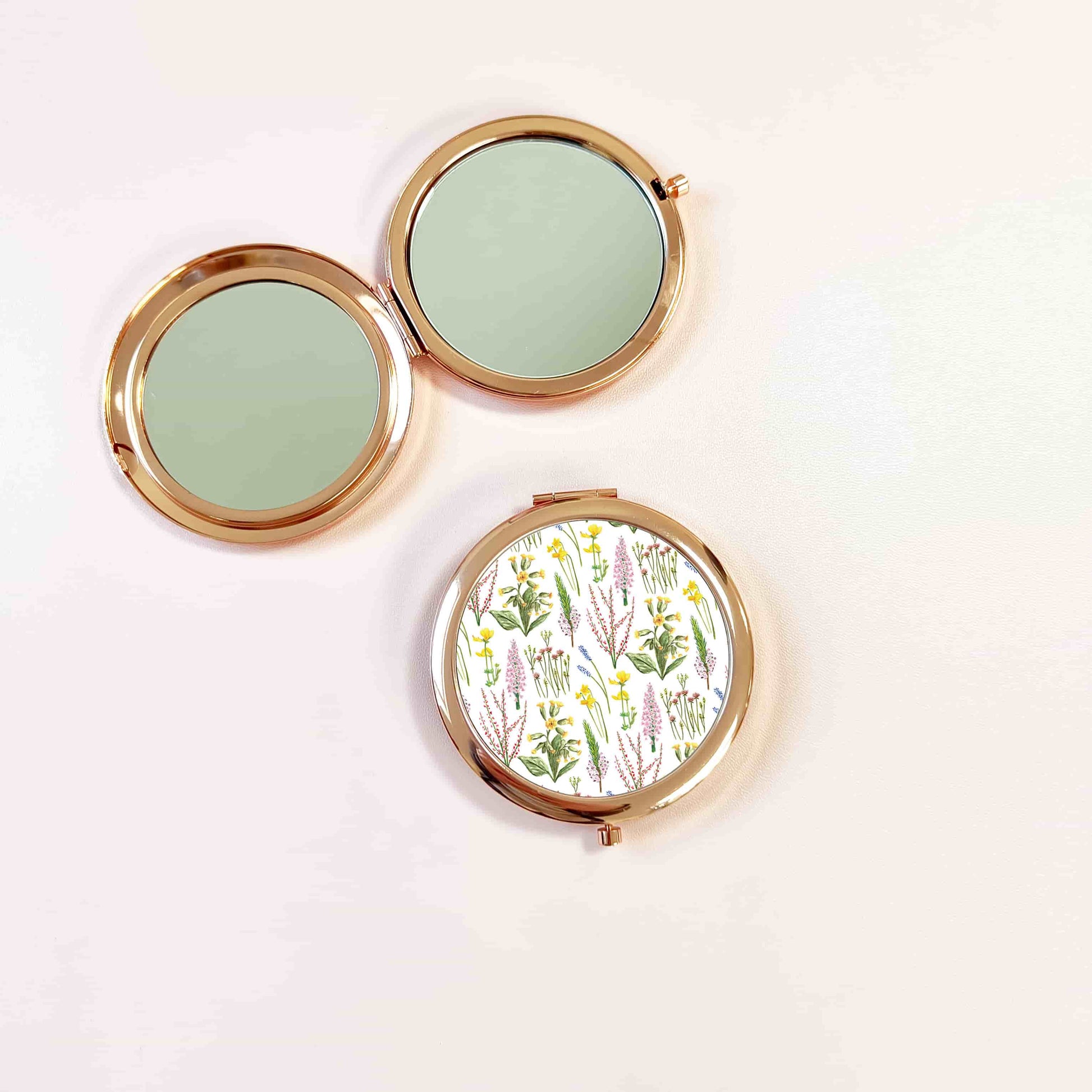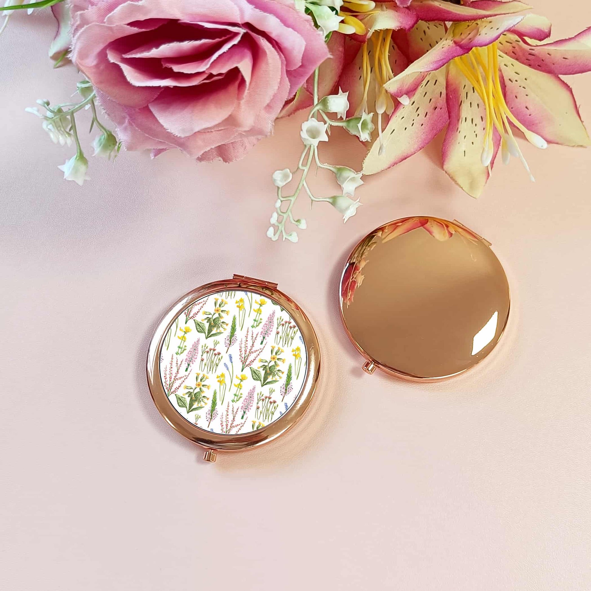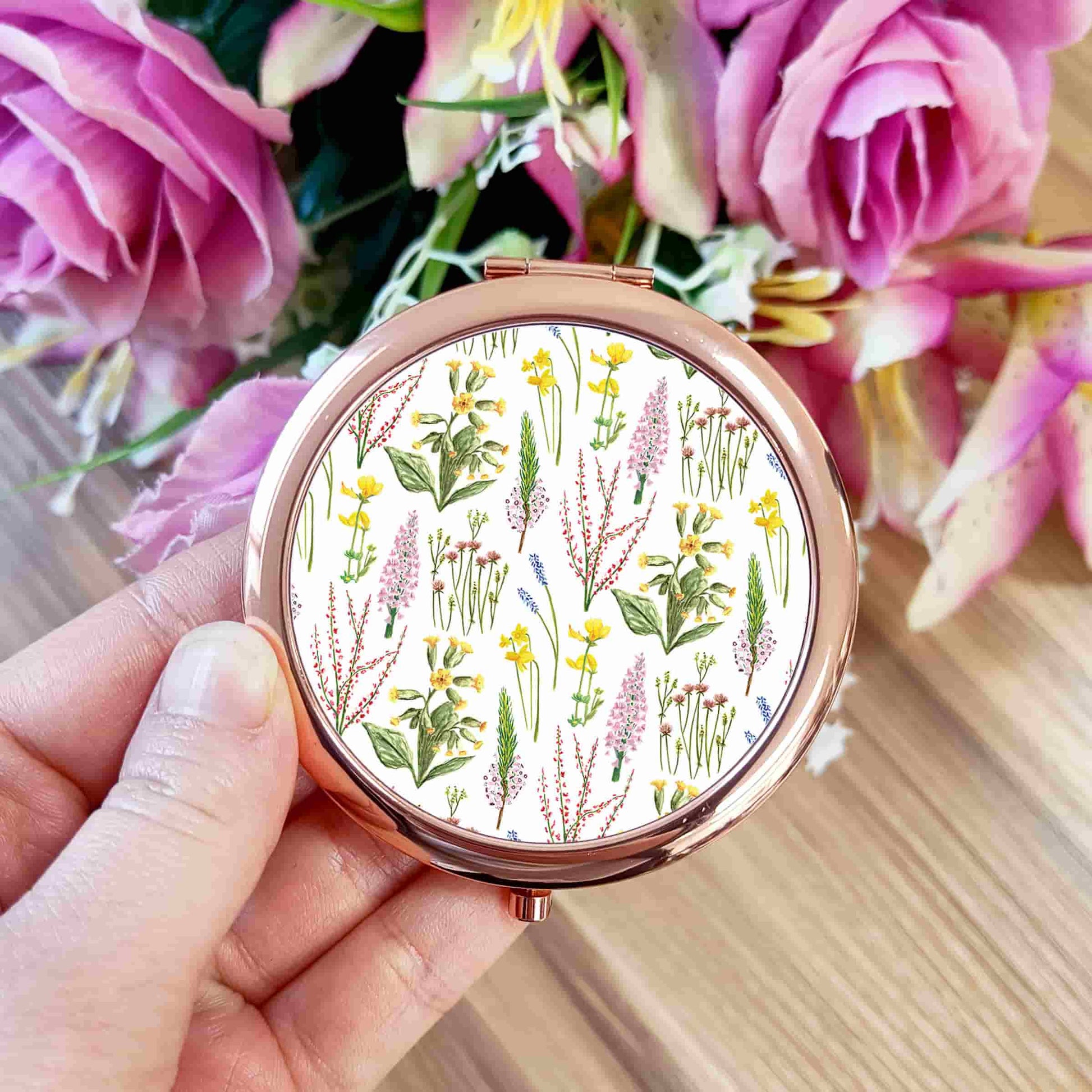 Wildflowers Pocket Mirror | Woodland Flowers Rose Gold Compact Mirror